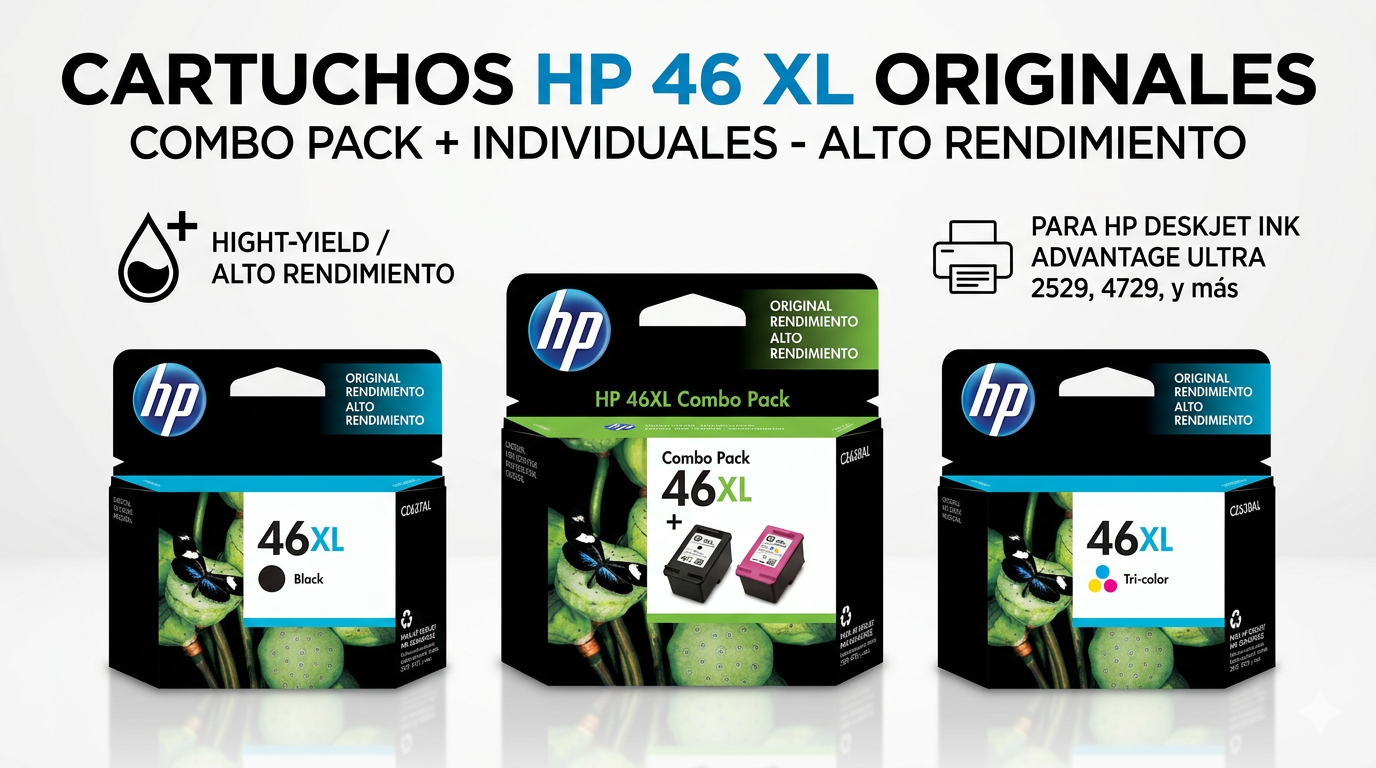 Los cartuchos de tinta original HP 46 (CZ637AL y CZ638AL) están fabricados específicamente para funcionar en armonía con tu impresora HP. A diferencia de las tintas genéricas, HP garantiza una impresión fluida desde la primera hasta la última página, evitando daños en el cabezal de impresión.