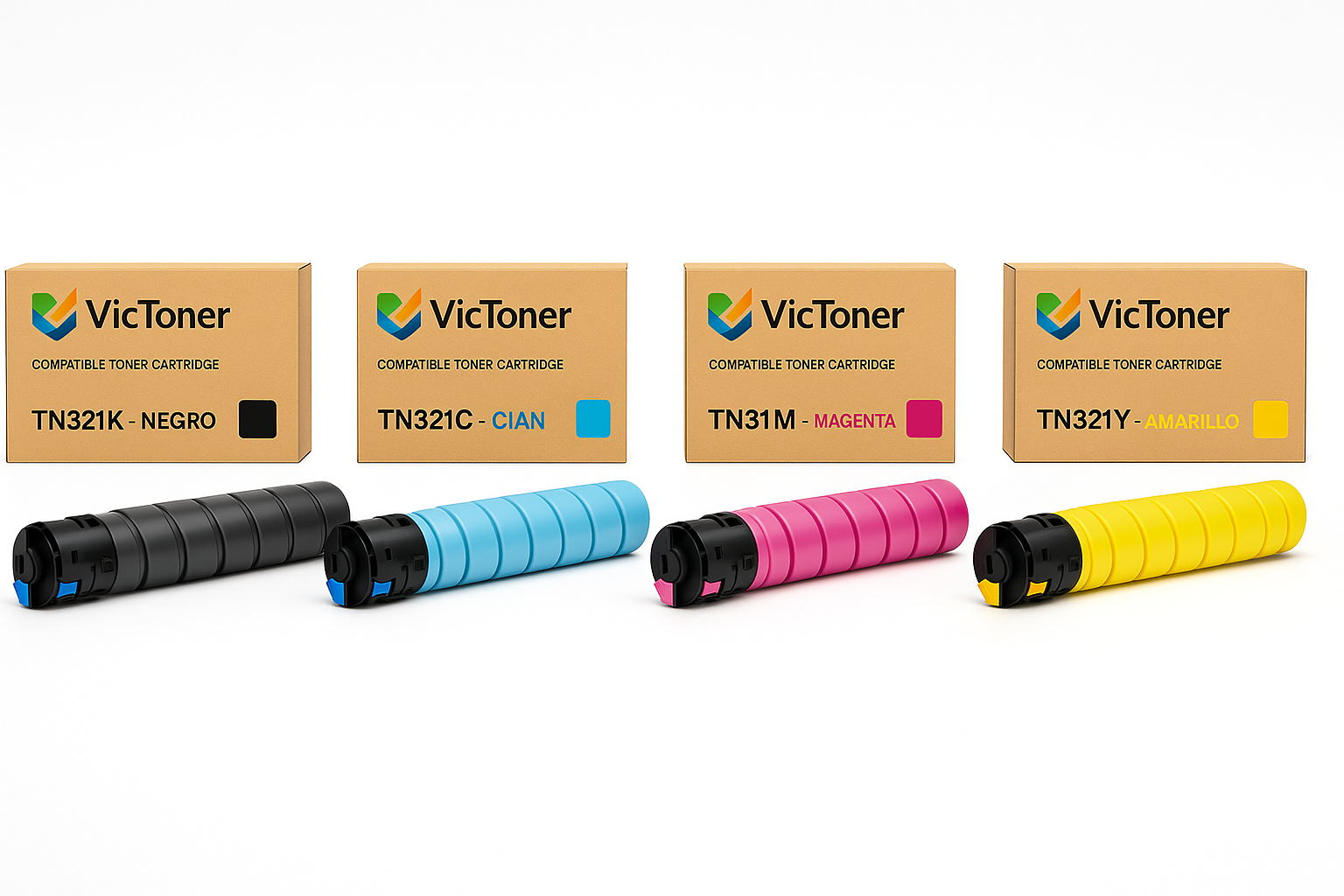 El tóner compatible VicToner TN321 está formulado para ofrecer rendimiento confiable y calidad profesional en entornos de impresión intensivos. Diseñado para las series Bizhub C224, C284 y C364 de Konica Minolta, brinda impresiones nítidas y colores brillantes, tanto para documentos de oficina como para materiales de marketing. Al optar por esta alternativa compatible, obtienes una opción de excelente valor sin comprometer la compatibilidad.