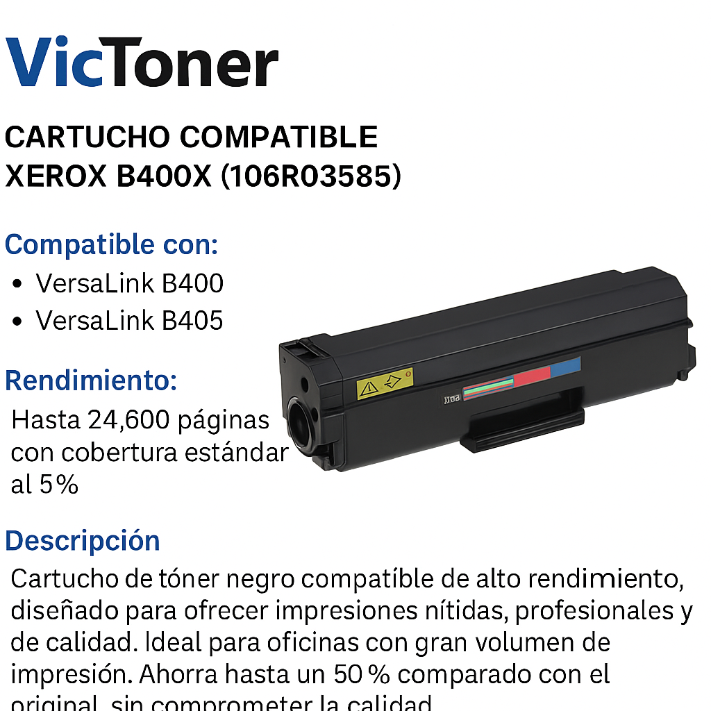 El cartucho de tóner compatible Xerox 106R03585 está diseñado para entregar una impresión de